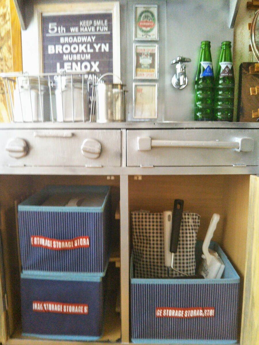 100均ペンキでイメチェン 子供用手作りカラボキッチンを飾り棚に再リメイク 暮らしニスタ
