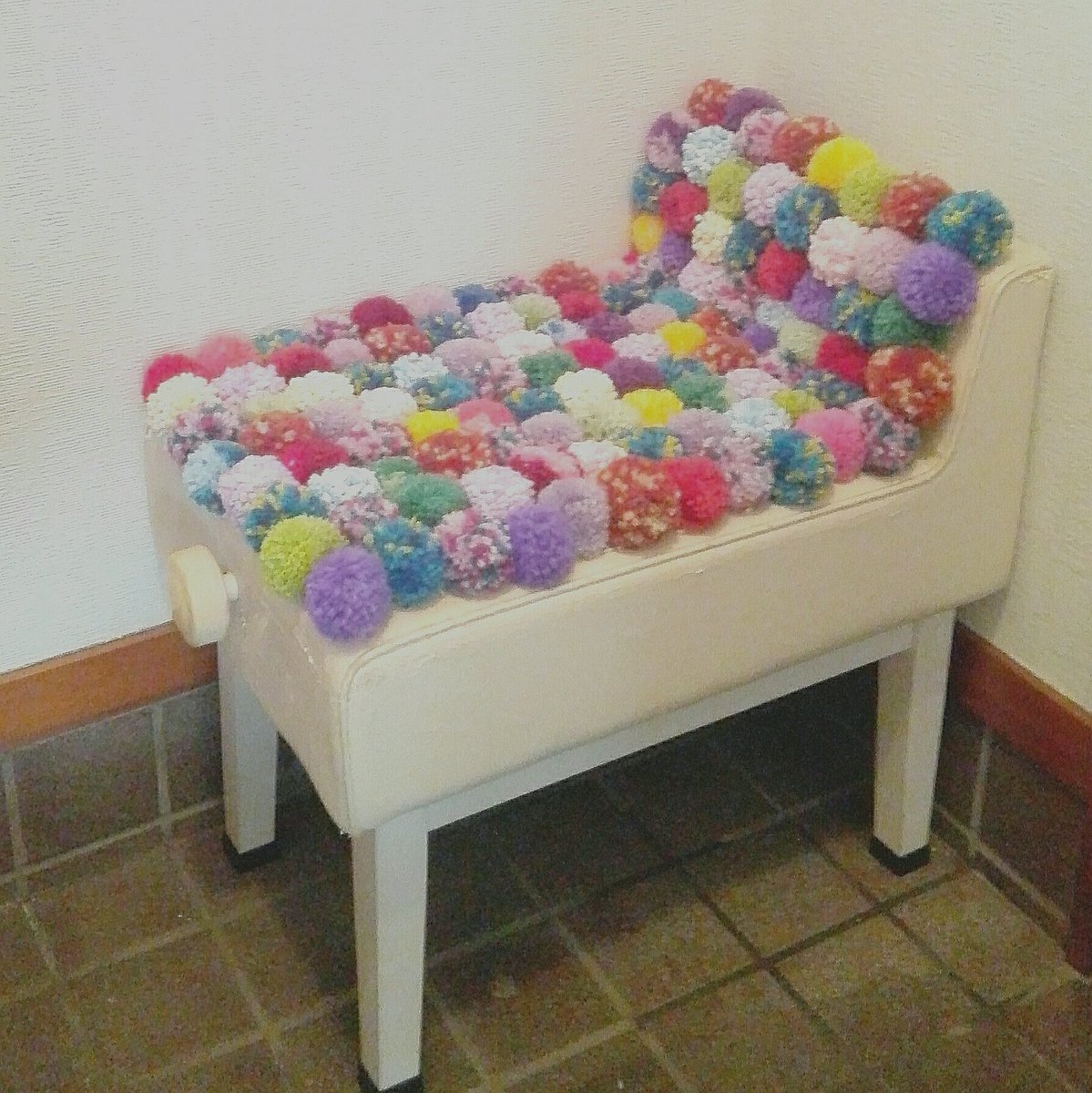 えにし على تويتر もらった毛糸でポンポンを作り続けて マットできた 玄関のヒッポ イス にぴったり 手作りマット 毛糸ポンポン