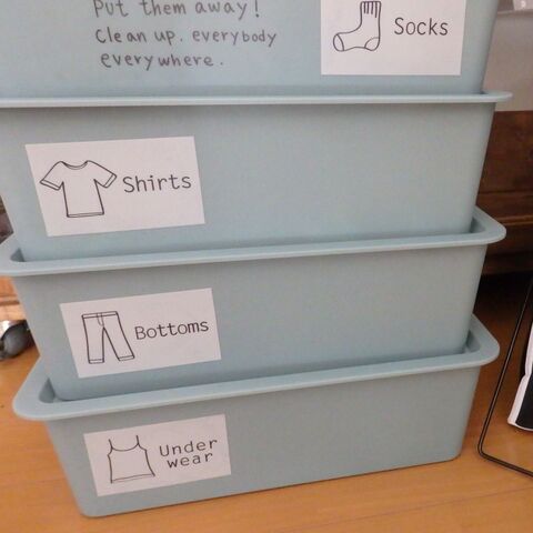 100均の収納グッズに子供の学校用衣類を収納 ラベルも可愛いキャンドゥーのステッカー 暮らしニスタ