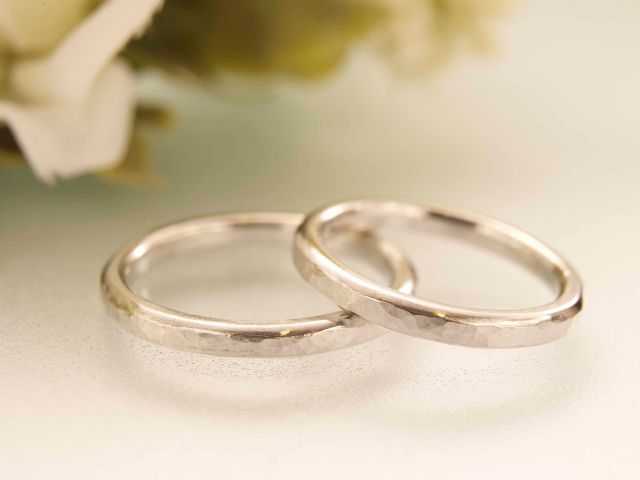 お二人で作る手作り結婚指輪はオリジナルのツチメ模様で出来上がりました ジュエリーのオーダー リフォームは ゆびわ工房プレフェレ